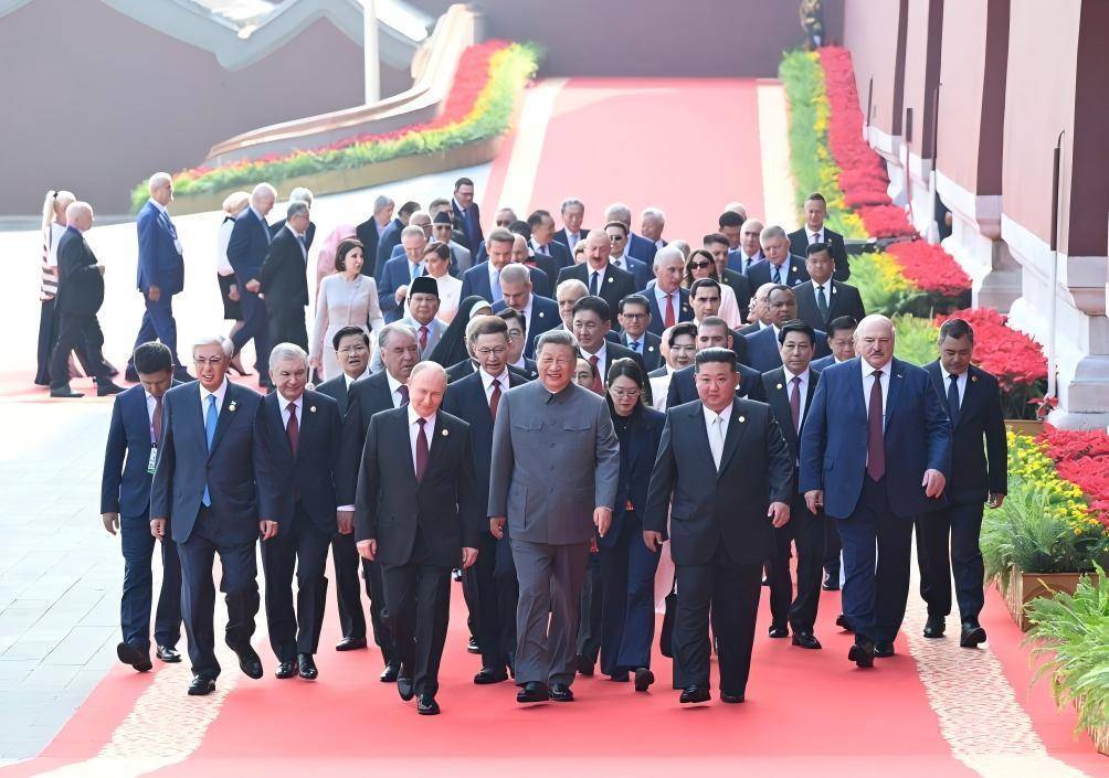 2025年9月3日,纪念中国人民抗日战争暨世界反法西斯战争胜利80周年大会在北京天安门广场隆重举行。这是大会开始前,中共中央总书记、国家主席、中央军委主席习近平同出席大会的外方代表团团长前往天安门城楼。新华社记者 申宏 摄众多国家元首和政府首脑等外方嘉宾相聚在北京。俄罗斯、美国、英国、法国、加拿大……来自14个国家的50位曾为中国人民抗日战争作出贡献的国际友人或其遗属代表,特别受邀一同在天安门广场见证这一重要时刻。