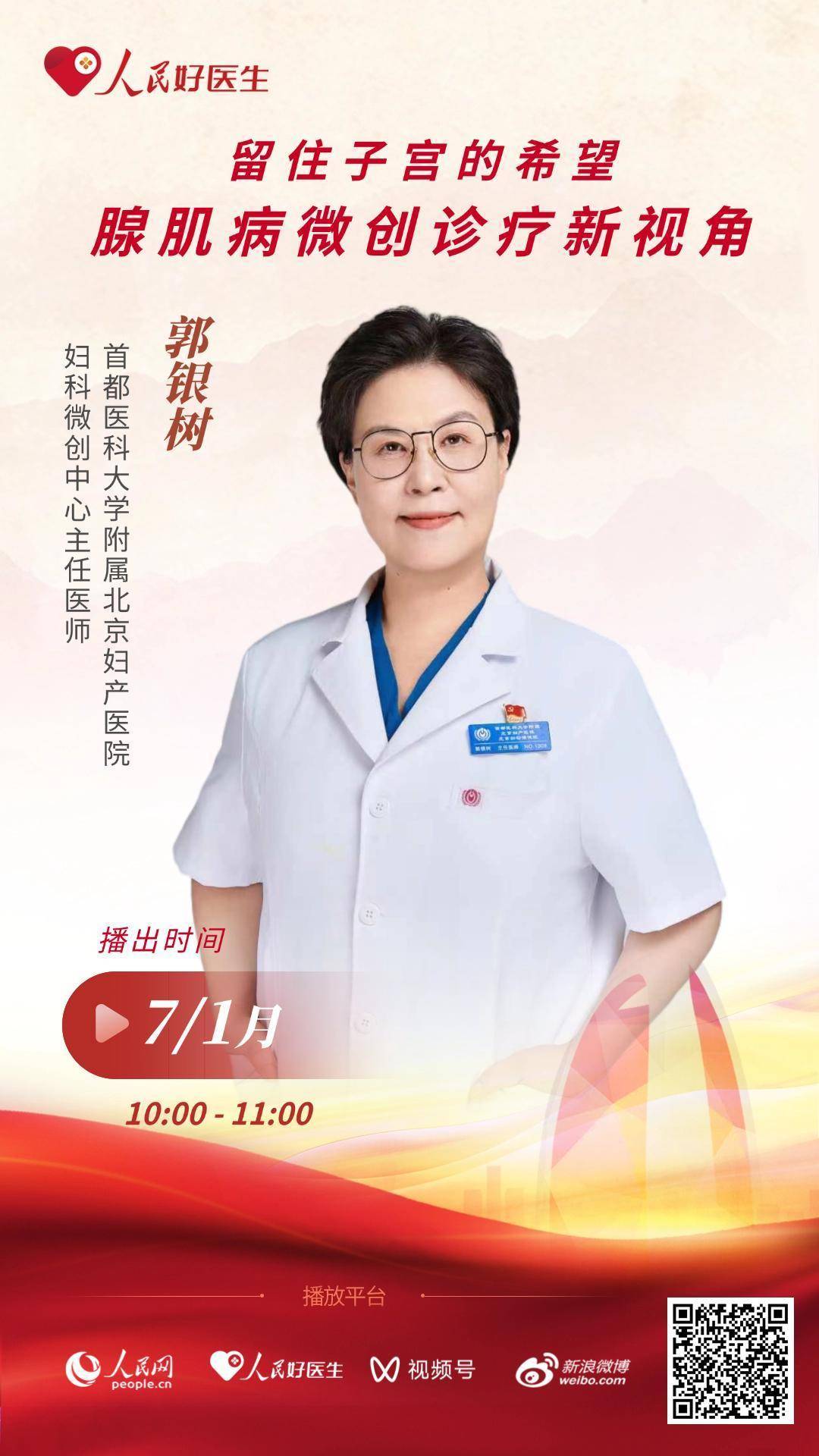 1月7日10:00-11:00,首都医科大学附属北京妇产医院妇科微创中心主任医师郭银树做客“人民好医生”客户端直播间,就如何通过微创手术技术,在有效缓解症状的同时,最大限度地保护子宫结构与功能与网友们进行讲解与交流。