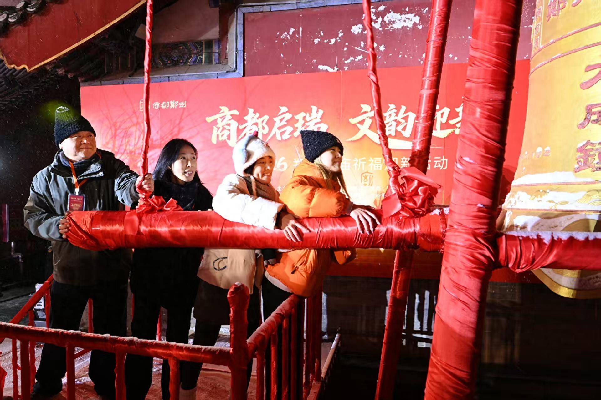 以撞钟礼仪辞旧迎新,是古都郑州经年已久的文化活动。午夜将至,千年文庙银装素裹、人头攒动,一派喜气洋洋的迎新氛围。