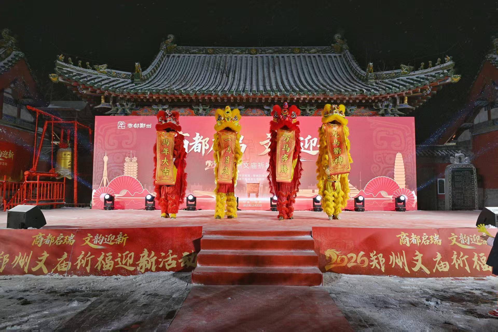 大河网讯(记者 莫韶华)雪落文庙传雅韵,钟鸣盛世启新程。12月31日晚,2026文庙迎新祈福活动如期举行,市长庄建球与社会各界代表人士和广大市民游客相聚郑州文庙,一起欣赏精彩的文艺演出,共同撞响文庙大成钟,带着美好的祝愿,喜迎充满希望的新一年。