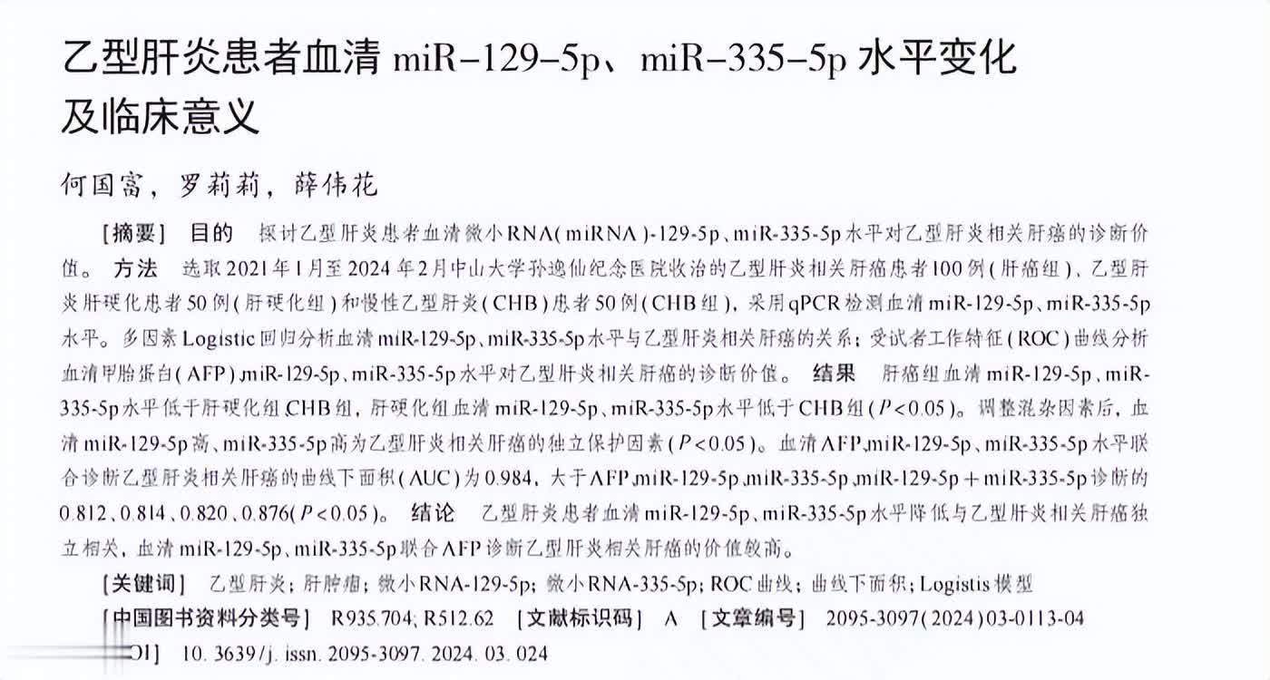 参考资料[1]何国富.乙型肝炎患者血清miR-129-5p、miR-335-5p水平变化及临床意义,转化医学杂志,2024-11-26